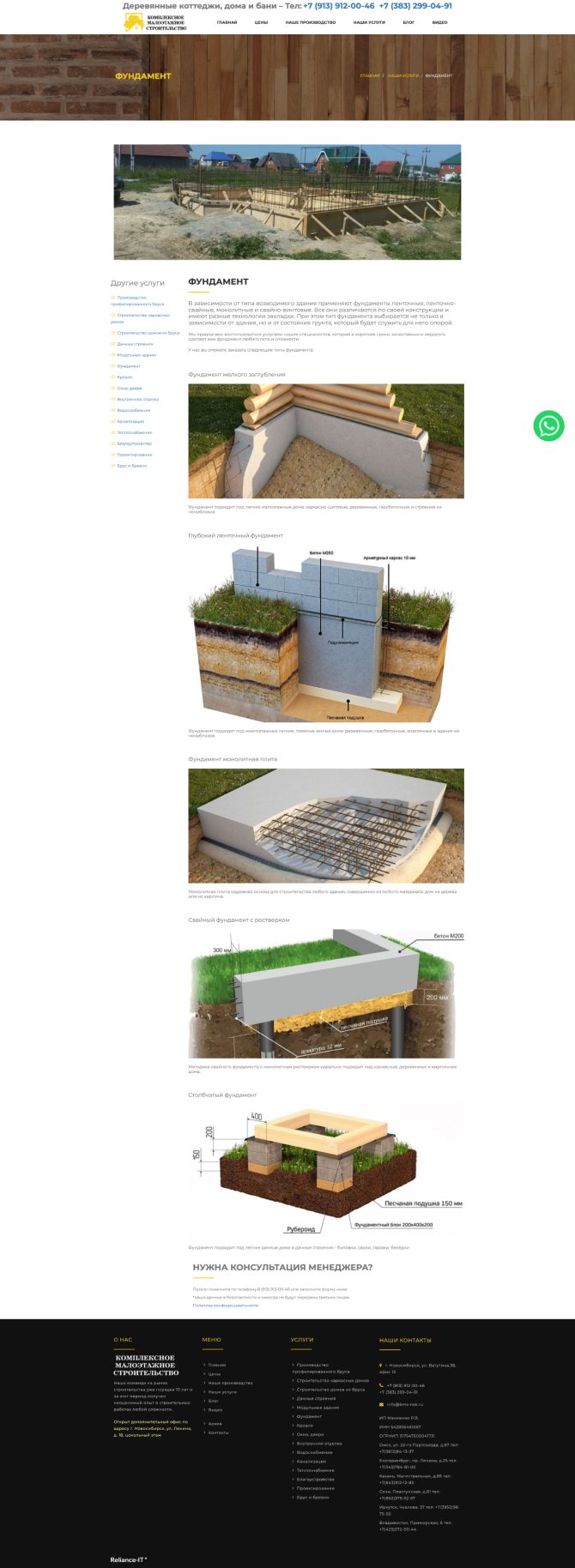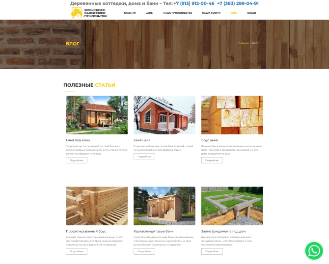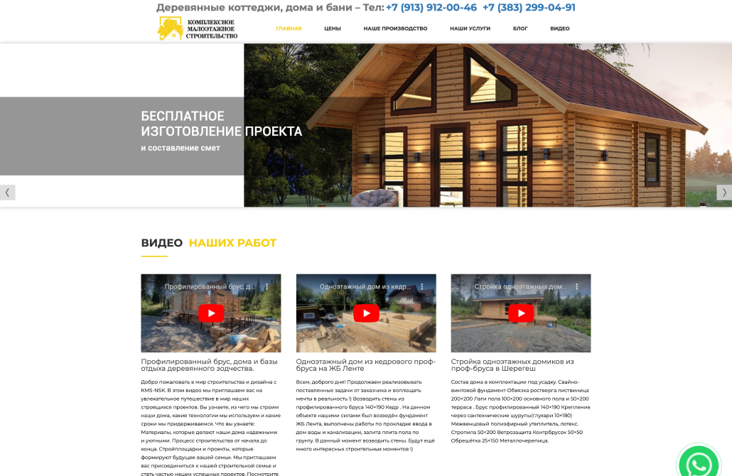 Создать красивый и удобный сайт для компании, специализирующейся на строительстве домов и бань по заказу.